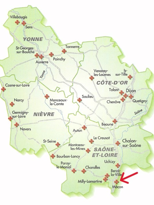 - Roche du Solutré : A l’extrême sud de la Bourgogne, le Grand Site de Solutré Pouilly Vergisson est reconnu pour ses richesses patrimoniales et paysagères remarquables. Son décor unique est marqué par deux superbes escarpements aux pieds desquels s’étend un vaste vignoble aux crus réputés, 8 km à l’ouest de Mâcon.