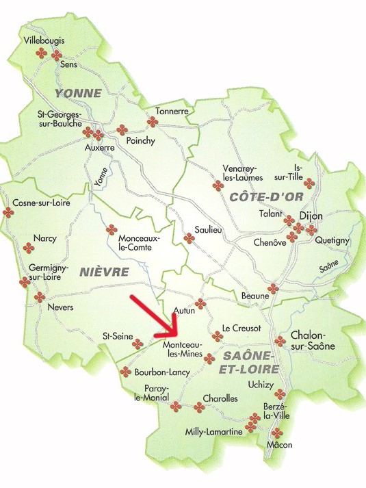 • TGV direct depuis la gare de Le Creusot/Montceau TGV  (à 20mn en voiture du centre de Montceau et accessible via une navette) : Lyon (1h) / Paris Gare de Lyon (1h) / Aéroport Charles de Gaule (1h30) / Lille (2h30) / Bruxelles (3h10)