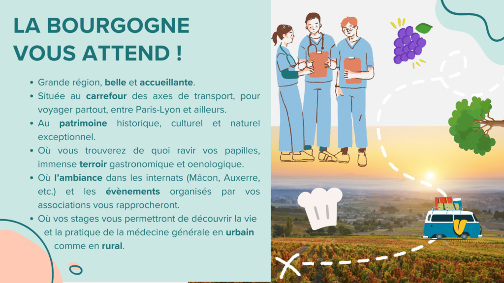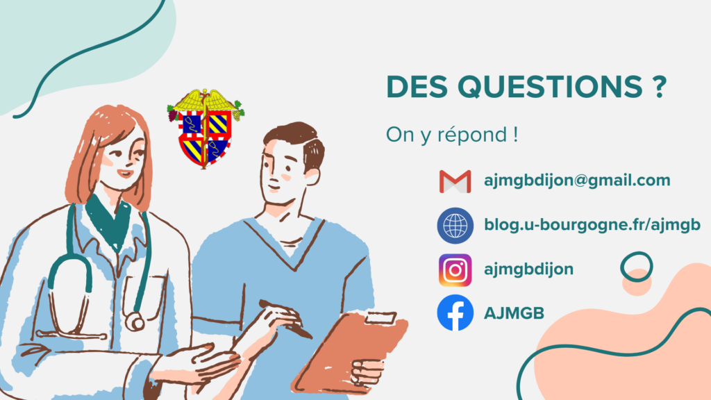 Si tu viens de passer les ECN/EDN et que tu te poses des questions sur les spécificités de la médecine générale en Bourgogne, tu es au bon endroit ! Si tu as encore des questions après avoir parcouru ce site, n’hésites pas à nous contacter par mail : ajmgbdijon@gmail.com