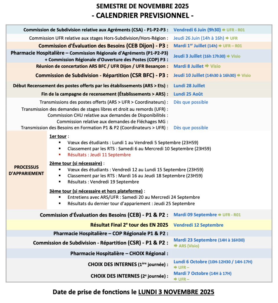 📃 A l’issue de la CSR, l’ARS fournit la liste définitive définitive des postes ouverts pour le semestre pour chaque spécialité.