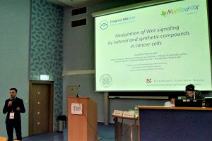 20180920 COST Action 2sd scientific session – Jaroslaw Paluszczak lecture 20 September 2018 The following lecture is presented by Jarosław Paluszczak from Poznam University of Medical Sciences (Poland) and deals with “Modulation of Wnt signaling by natural and synthetic compounds in cancer cells”.