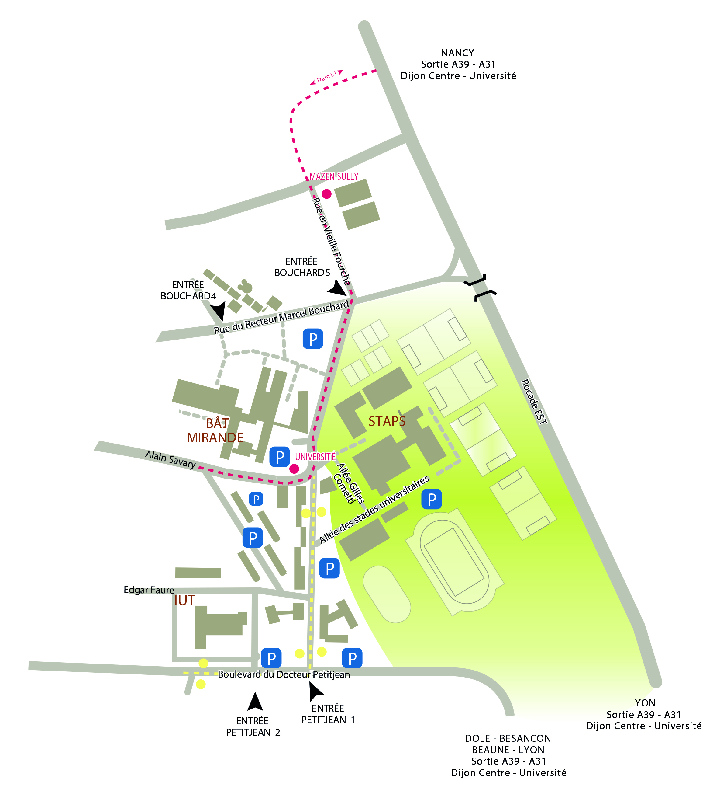 Accès au campus de Dijon par la rocade Est, direction Dijon centre puis Université.
