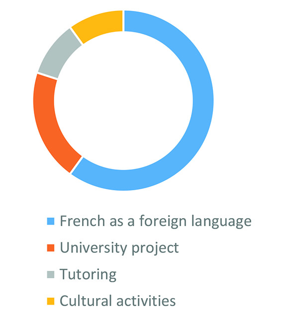 • Train French students who act as tutors to the migrant students of the DU in order to promote social integration and help them learn French.