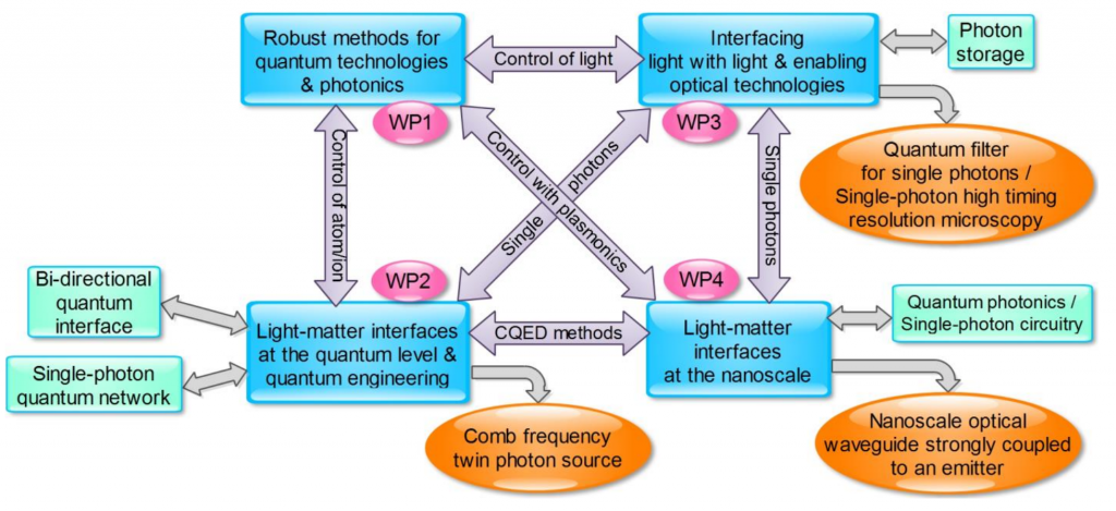 - Develop robust tools for quantum technologies based on CQED, trapped ions and atoms, plasmonics; and transfer them to photonics