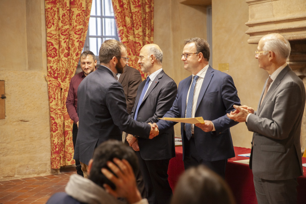 Le Président du Conseil départemental, François SAUVADET et Patrick CHAPUIS, Rapporteur du Budget de la Côte d’or, conseiller départemental et Maire de la Commune de Fontaine-Lès-Dijon ont vivement encouragés et remerciés les lauréats pour leur engagement dans une spécialité qui ouvre des perspectives historiques d’emplois dans le secteur privé et public des finances publiques locales.
