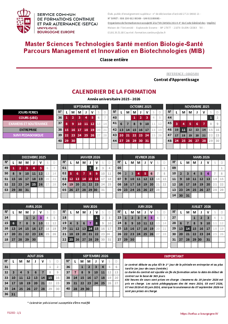 Contact administratif : SEFCA Université de Bourgogne  Formation continue-SVTE
