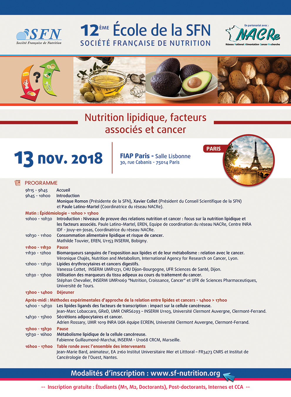 Comme chaque année, nos étudiants se rendront à Paris pour l’école de la Société Française de Nutrition. La 12ème édition aura pour thème : “Nutrition lipidique, facteurs associés et cancer?”