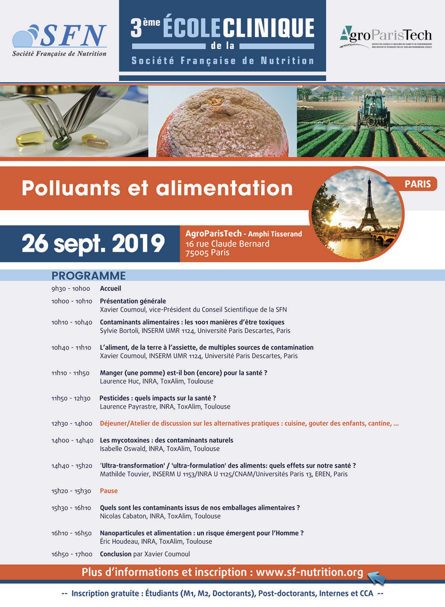 Dans le cadre de leurs enseignements de master 2, la promotion 2019/2020 se rendra à AgroParisTech le 26 septembre 2019 pour la troisième École Clinique de la Société Française de Nutrition.