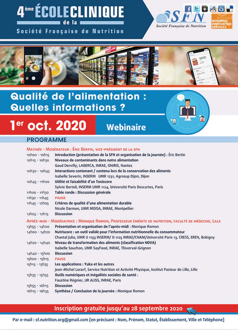 La SFN organise, le 1er Octobre 2020 sa 4ème Ecole Clinique qui aura pour thème “Qualité de l’alimentation: quelles informations?“.