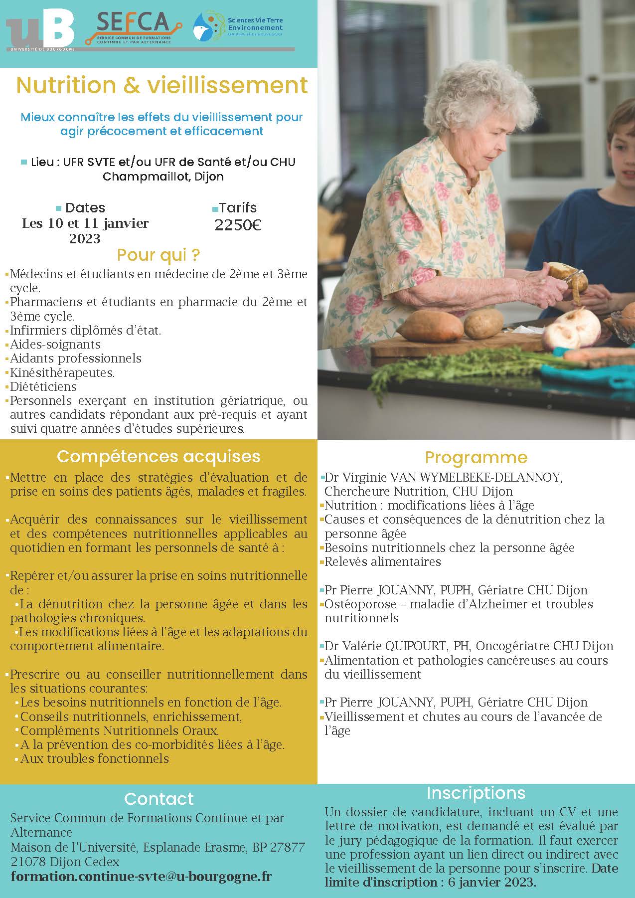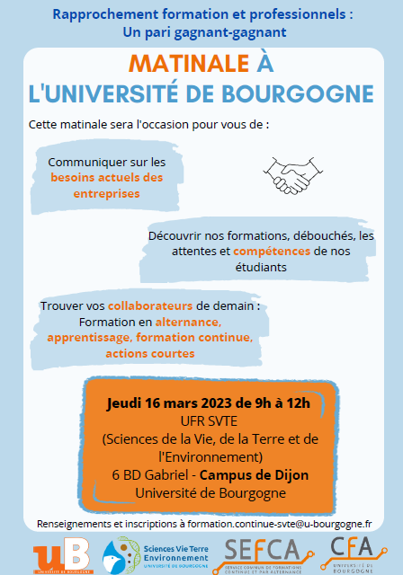 Date limite d’inscription : le 06 janvier 2023 à l’adresse suivante : formation.continue-svte@u-bourgogne.fr
