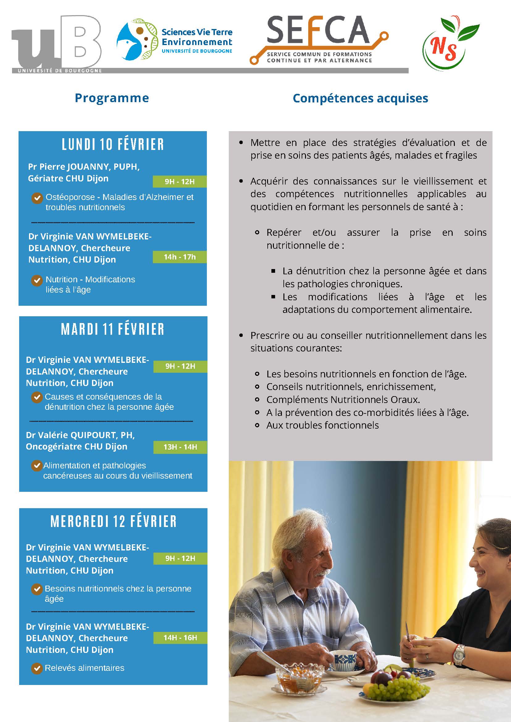 Le Master 2 Nutrition Santé reconduit sa formation courte les 10, 11 et 12 février prochain « Nutrition et vieillissement : mieux connaitre les effets du vieillissement pour agir précocement et efficacement »