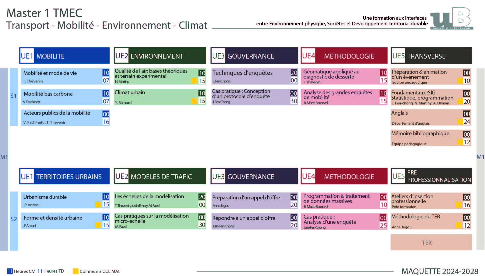 Programme des enseignements Répartition des cours : M1 : 470 heures (sans les examens) M2 : 425 heures (sans les examens) Contrôle des connaissances diversifié : Jeux de rôle Jeu sérieux Restitution face à un public de professionnels Dossier professionnel Simulation d’embauche