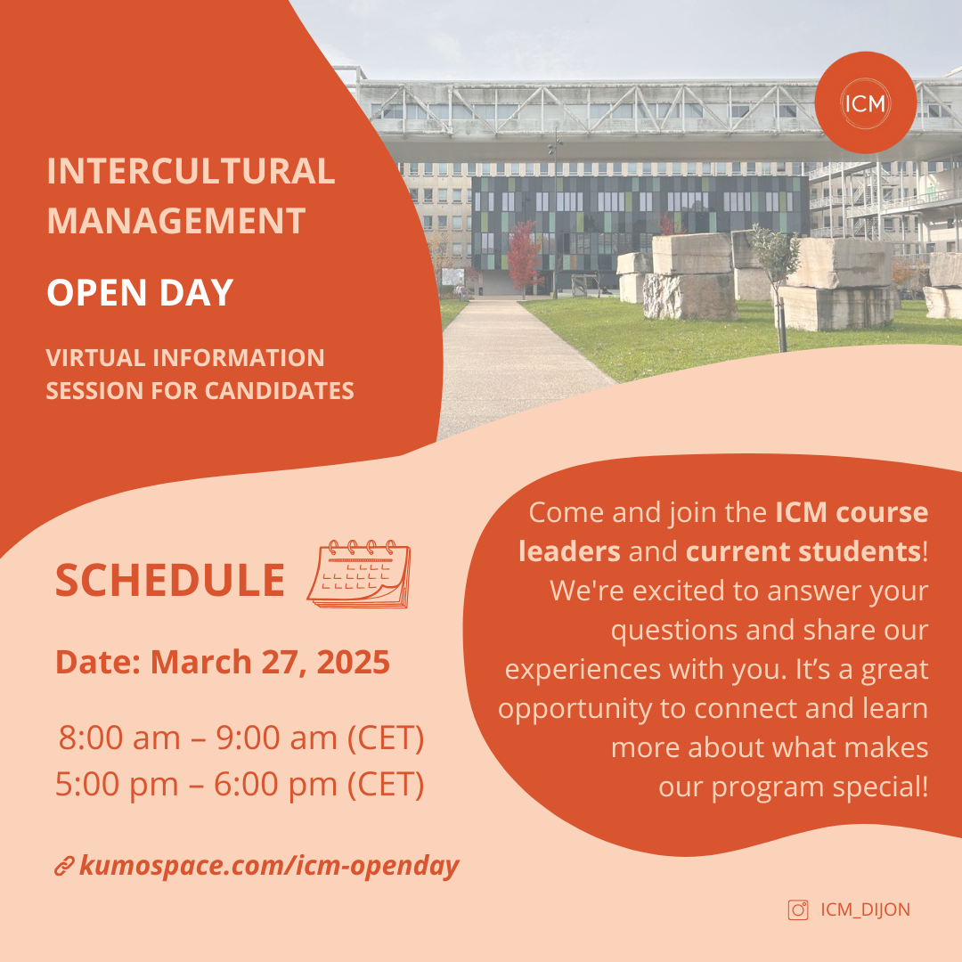 The Intercultural Communication team at the University of Burgundy is excited to invite prospective students to a virtual Open Day for the Master in Intercultural Management (ICM) program.