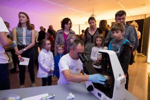 Pas à la « Nuit » où des centaines de visiteurs ont pu découvrir les enjeux et le déroulement concret de vraies expériences scientifiques ! Diffusion des idées, sport sans stéréotype, expérience zen, énigmes et casse-têtes… la recherche dont vous êtes le héros, c’est à la « Nuit » !
