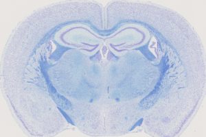 Coronal brain section of a mouse brain double-stained with Nissl and Luxol.