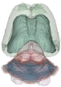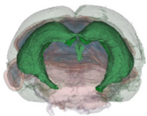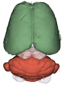 We have acquired high-resolution episcopic microscopy (HREM) technology for the study of whole embryonic and adult brains. HREM is a block-facing serial sectioning imaging technique in which samples are embedded in resin and sectioned within the body of a fluorescence microscope using an automated microtome. Therefore, HREM does not require the need of clearing or optical sectioning. The result is a multi-fluorescence 3D brain where brain regions are modelized. 24 brain structures are routinely segmented by manual annotations but we are in the process of developing artificial intelligence tools to automate segmentation (collaboration with Dr. Alain Lalande).